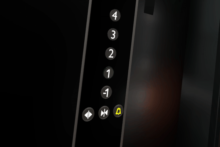 There are 2 major possible improvements that should be made in the future, other than the unaccomplished additional objectives. First, the doors can't go between opening anc closing mid-movement. Meaning if the doors were closing, you would have to wait until they are fully closed before you can start to open them. This is to avoid 2 different coroutines trying to move the doors at the same time which doesn't break the interaction, but leads to the doors teleporting. This was not implemented because the sound effects for doors opening and closing require a dynamic cutoff sound design that was out of scope for this iteration. Also, where there are two elevators side-by-side (see figure below), the other buttons only call the left elevator. This doesn't break the interaction, but perhaps damages immersion.