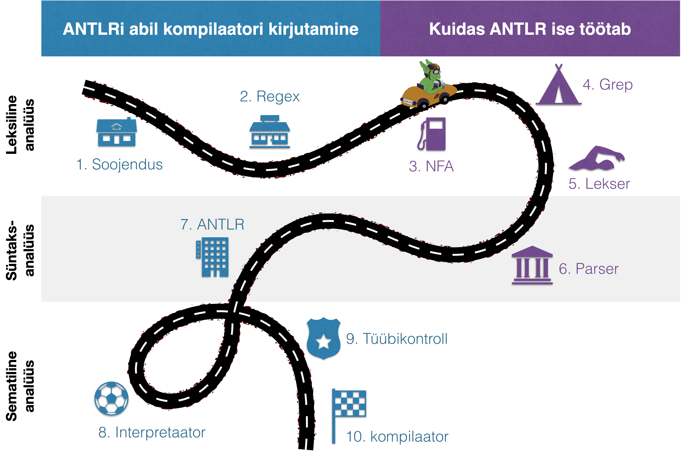 Nüüd on saabunud kõige olulisem hetk Wettlaufweltmeisteri seiklustel. Leksilise ja süntaktilise analüüsi jaoks on olemas suurepärane tööriist nimega ANTLR. Kas peaks otse liikuma ANTLRi kasutamise juurde või kõigepealt uurida, kuidas ise leksilist analüüsi realiseerida? Wettlaufweltmeister mõtleb pikalt järele, mis tegelane ta olla tahab: pealiskaudne tarbija või sügav asjatundja. Tema on oma otsuse teinud, aga kas Sina tahad kaasa tulla selles kõrvalpõiges või liiguksid pigem otse kasutamise juurde?