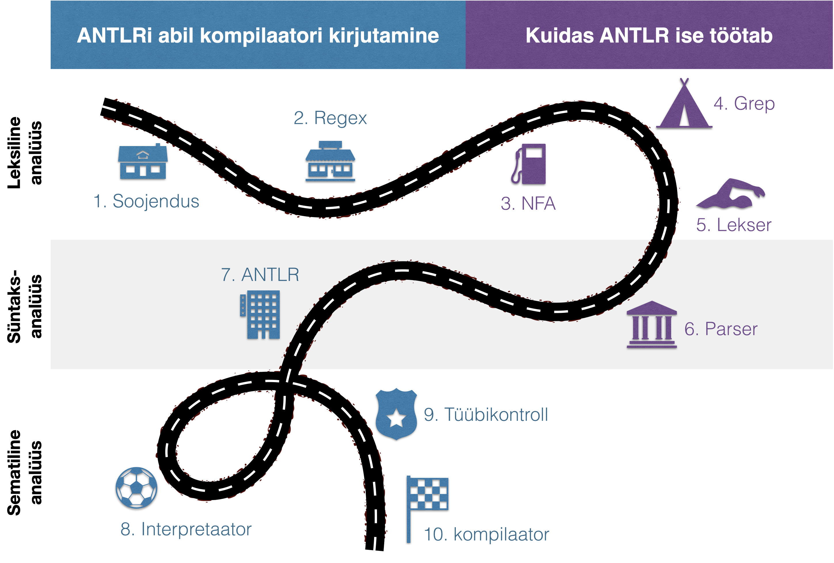 Kursuse lõpuks oled oma käega ühe lihtsa keele jaoks kompilaatori ehitanud, aga enne kui ANTLRiga keelte disainimise juurde läheme, tuleb mõndadest keele spetsifitseerimise koostisosadest põhjalikumalt aru saada ja neid enda käega teostada.