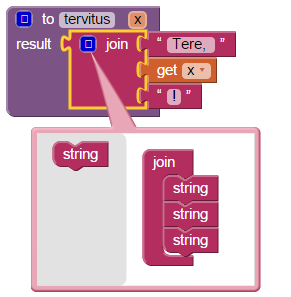 Nüüd tagastame selle sõnega koos tervituse "Tere, x!"), kus x on siis alamprogrammile antav nimi: