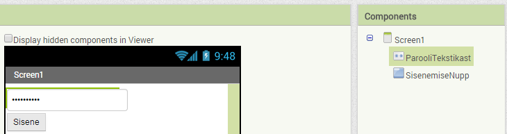 Teeme App Inventoriga tutvumiseks mobiilirakenduse ehk programmi, kuhu sisenemiseks on vaja parooli.