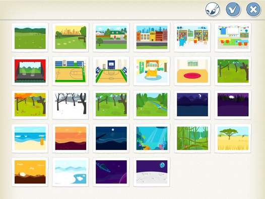 Esimeseks taustaks tuleks valida taust nr 1, seejärel lisada uus lava ning lisada teiseks taustaks taust nr 2. Esimesel taustal on linn koos kooliga, teisel kodu, kuhu tuleks lõpuks jõuda.