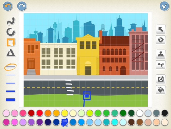 Bussipeatuse märki on kõige lihtsam teha kui esmalt valida ruudu joonistamine ning sellega üks nö ruudukujuline täpp teha, ning seejärel selle ümber joonistada ristkülik ja märgile ka post. Bussipeatus tuleb joonistada ka kodu taustale.