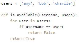 Suurel interneti veebisaidil on 300 miljonit kasutajat. Kui uus kasutaja sisse logib, peab ta valima endale kasutajanime, mida pole varem kasutatud. Et seda teha peab veebisaidil olema funktsioon, mis kontrollib, kas sisestatud sõne on kasutajanimena saadaval või mitte. Eeldame, et veebiserveriks olev arvuti suudab võrrelda miljon sõnet sekundis. Kui palju kulub järgneval funktsioonil aega, et teha kindlaks, kas soovitud kasutajanimi on saadaval või mitte?