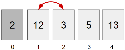Jätkame sama protsessi, vahetades järgmisena elemendid 12 ja 9.