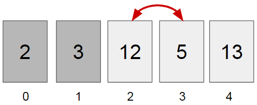Võib juhtuda, et vähim element on juba õigel kohal. Sellisel juhul võime nö. vahetada selle arvu iseendaga, mille tulemusena midagi ei muutu