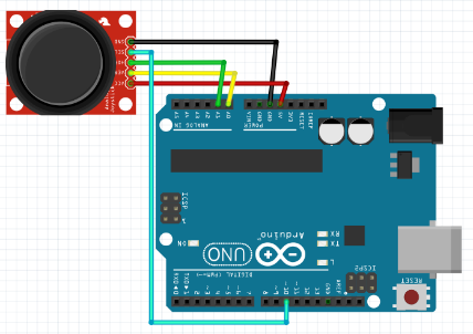 Selles peatükis ehitame eelmise tunni vooluahelat meenutades vooluahela, millesse lisaks juhtkangile lisame ka kaks servomootorit (ühe x-telje ning teise y-telje tarvis). Ühte servomootorit saame juhtida ühe tavalise potentsiomeetriga—ent meil on juhtkangi näol kaks potentsiomeetrit (x-telje ja y-telje tarvis).