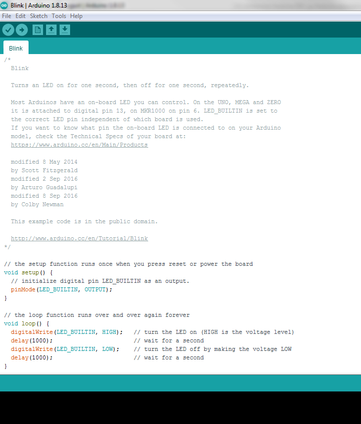 Alustamiseks esimese ülesandega tuleb selgitada Arduinole, et tahate vilgutada Arduinole sisse ehitatud LED-i.