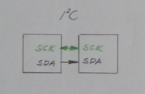 I2C puhul (mis on sünkroonne sidepidamise viis) on vaja vähem juhtmeid kui SPI puhul: kasutame SCK takti-infot ja SDA Serial Data signaali. SCK-signaali saame alati parasjagu toimetavalt master-seadmelt. Meil on võimalus ühendada rohkem kui ühe slave-seadmega rohkem kui üks master-seade.