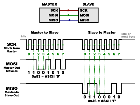 Seega, kui meil on vaja liigutada üheaegselt vastupidises suunas liikuvat suuremat infokogust ja kui on alati vaid üks infosaatja, ent palju info vastuvõtjaid—siis kasutame SPI ühendust.
