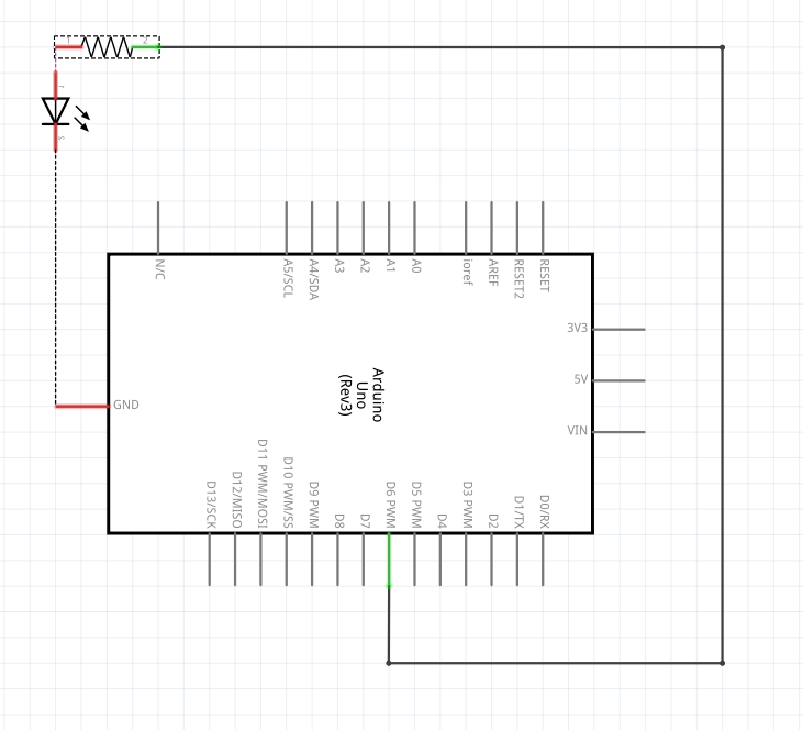 Alustuseks ehitame eelmise peatükiga üsna sarnase lihtsa vooluahela: ühe LED-iga. Vaata kõrval olevat skeemi.