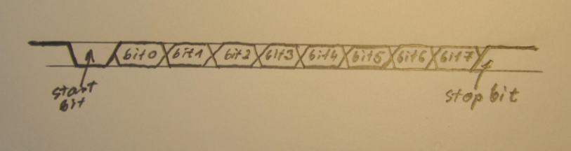 Asünkroonses järjestiksides alustamise ning lõpetamise bittide kasutamise kohta saame joonistada sellise skeemi: