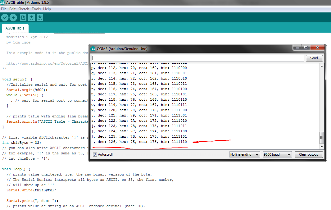 ASCII tabel Serial monitor abiga: kas tabelis on kõik piisav ja vajalik?