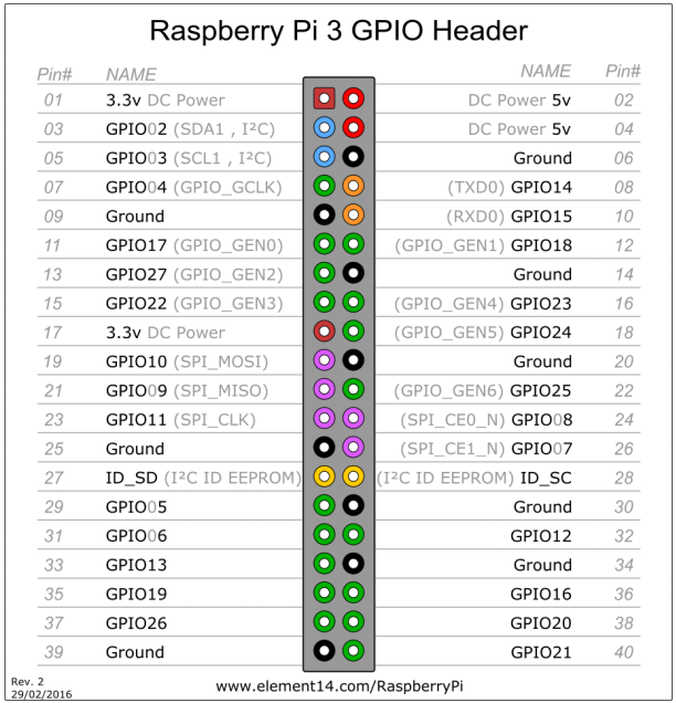 Need on enimkasutatavad viigud projektides. Nende abil saab välja saata või vastu võtta 3.3v pingega voolu. Täpsemalt vaatlusel näed, et GPIO viigud on joonisel tähistatud erinevate värvidega. Põhjus seisneb selles, et kindlad GPIO viigud järgivad erinevaid protokolle ning on mõeldud näiteks andmete saatmiseks või vastu võtmiseks. Tekstiga “ground” ning musta värvusega tähistatud viigud on mõeldud loodud elektriühenduse maanduseks. Neid viike läheb Sul tarvis iga loodava ühenduse jaoks. Oluline on tähelepanu pöörata ka nummeratsioonile ning tuleb jälgida, kas loetavate materjalide puhul räägitakse viikude plaadipealsest nummeratsioonist (numbrid ühest neljakümneni) või GPIO viikude nummeratsioonist (numbrid ühest kahekümnekuueni). Programmeerides kasutame just viimasena välja toodu numbriloogikat.