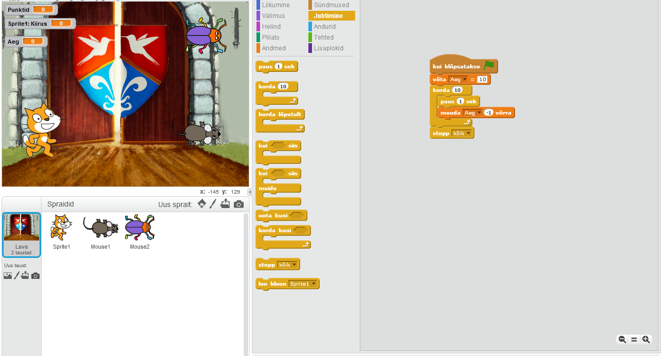 - oskad luua uut muutujat menüüst Andmed, mis loeks mängus punkte;